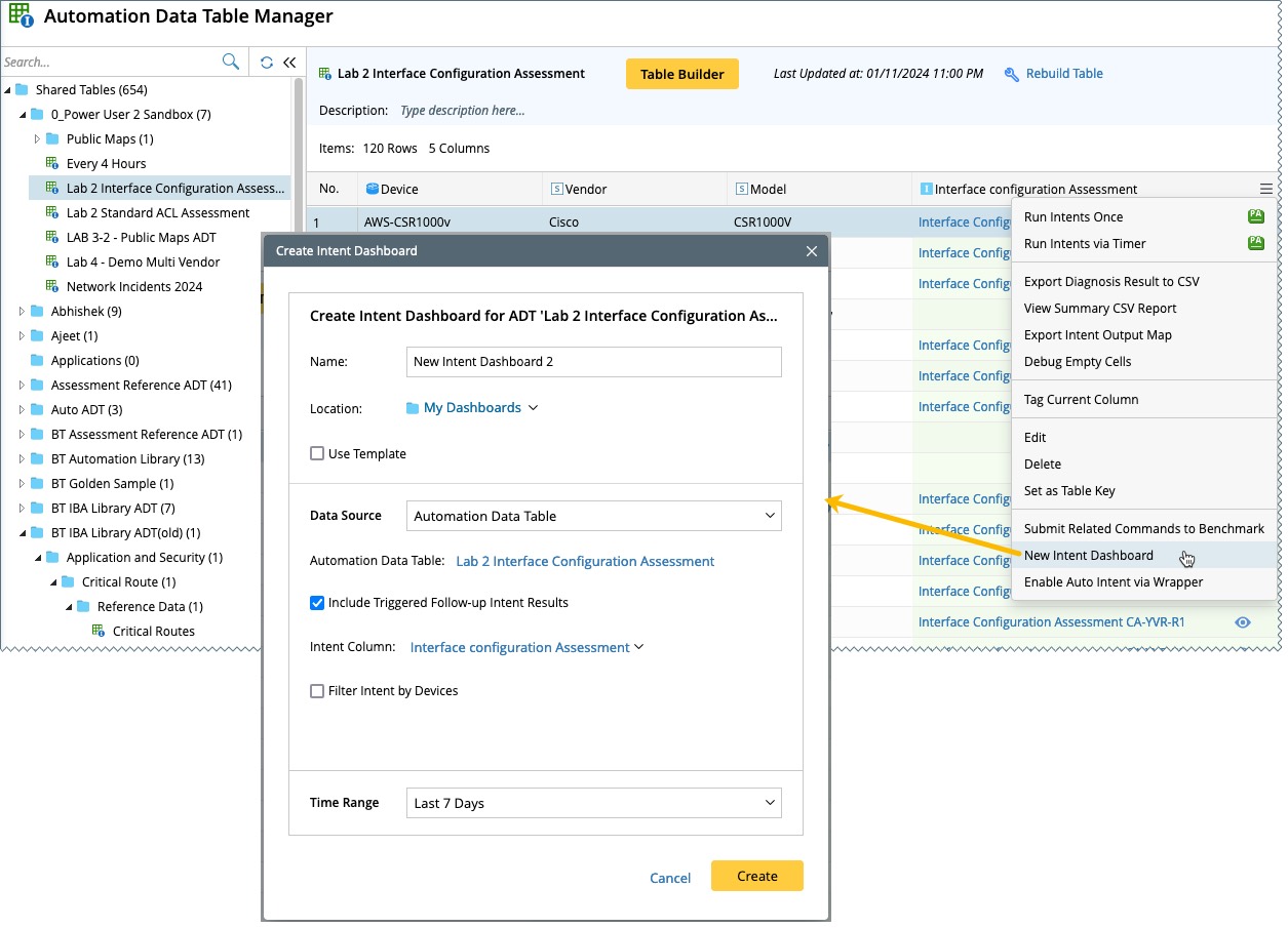 A wizard is provided to create the Intent Dashboard. A user can create an Intent Dashboard as follows: