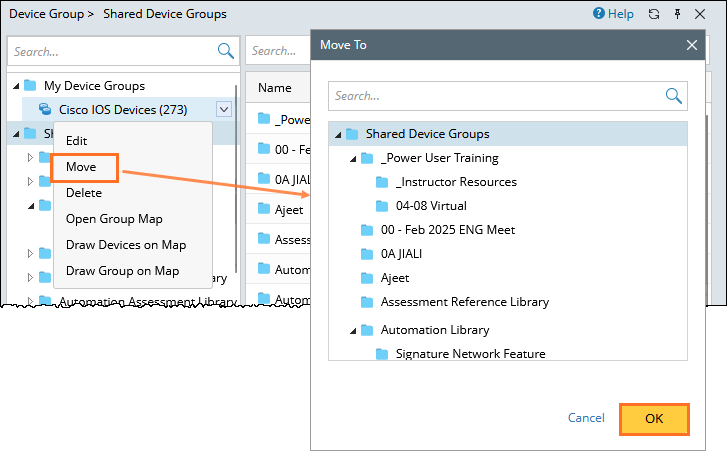 3. Choose a Shared Device Groups folder.