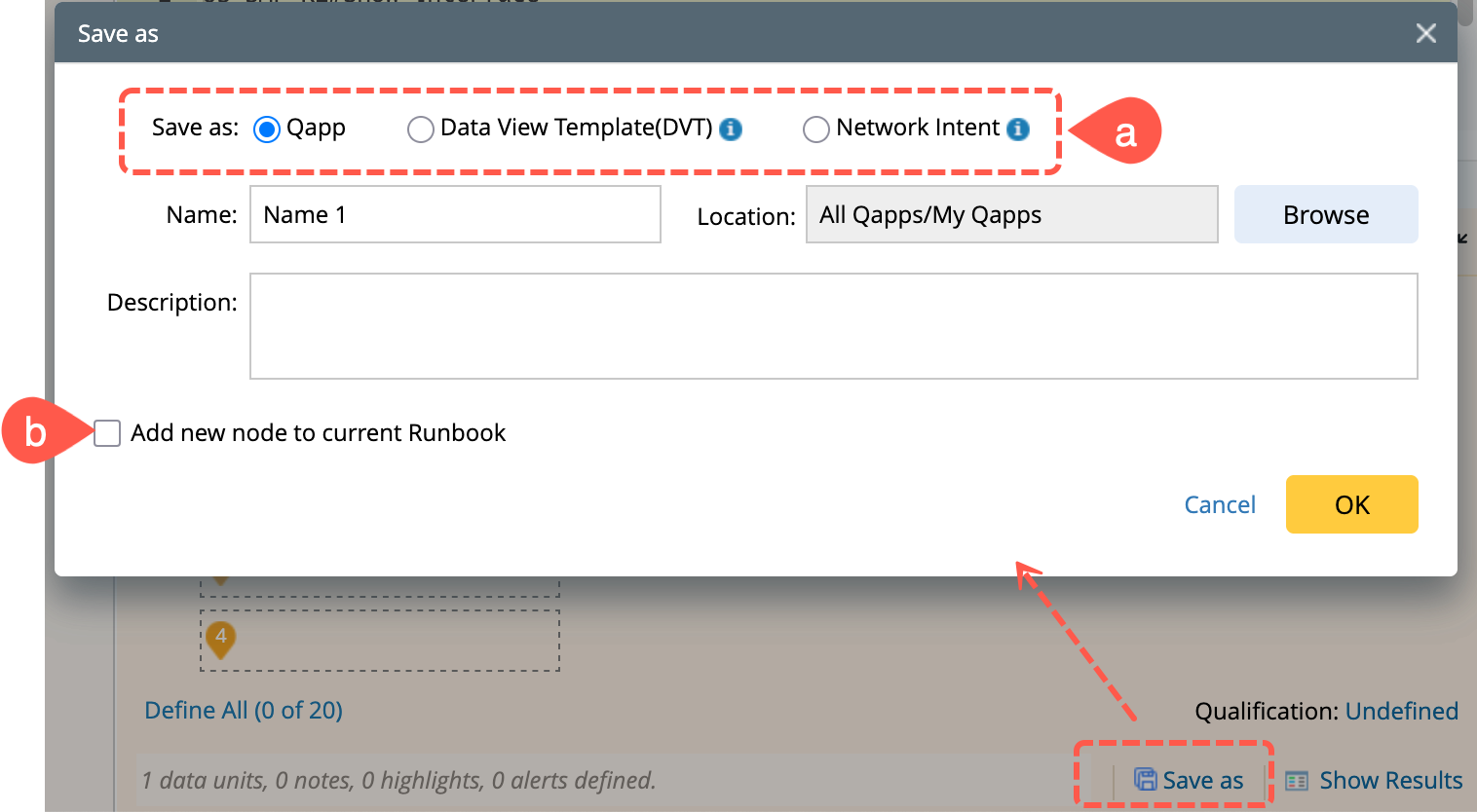 - Add it directly as a Qapp or Data View Template node to the current Runbook.