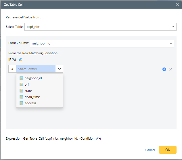 - Click + Get_Table_Cell to define where the cell value comes from.