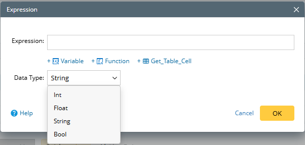 - If you define the expression from the left side, you need to select the variable type to determine the operator.