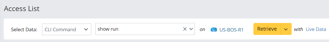 Use the show run CLI command on the Device US-BOS-R1 as an example. You can define a Collector Parser to parse access list and permit information.