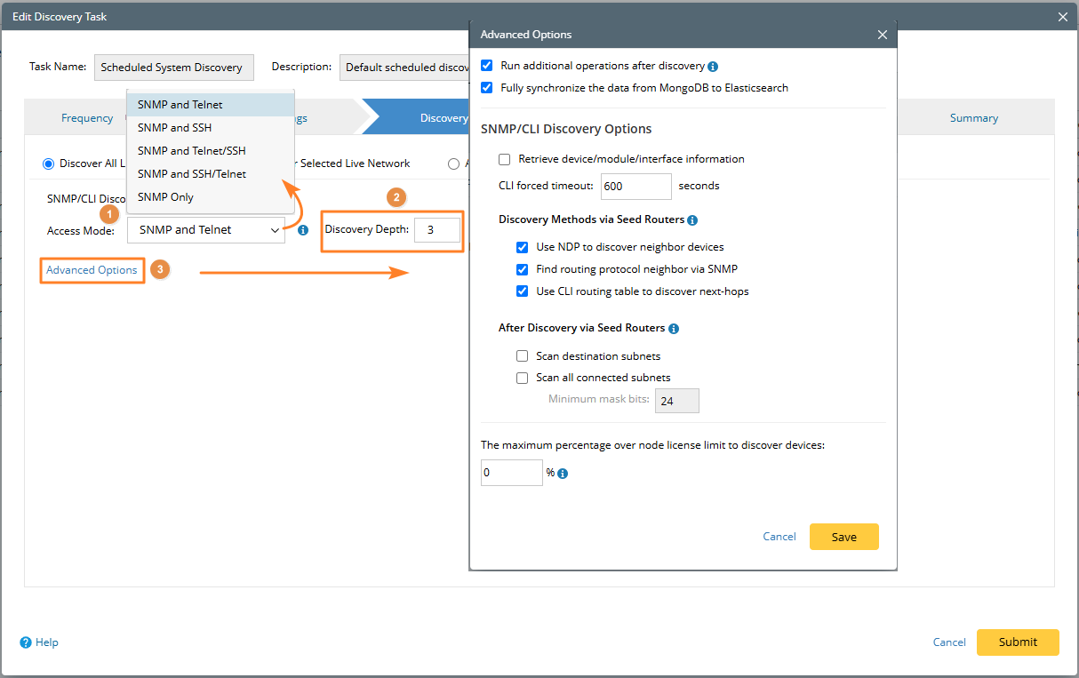 - Discovery Depth — set the discovery depth by entering a value between 0 and 255.