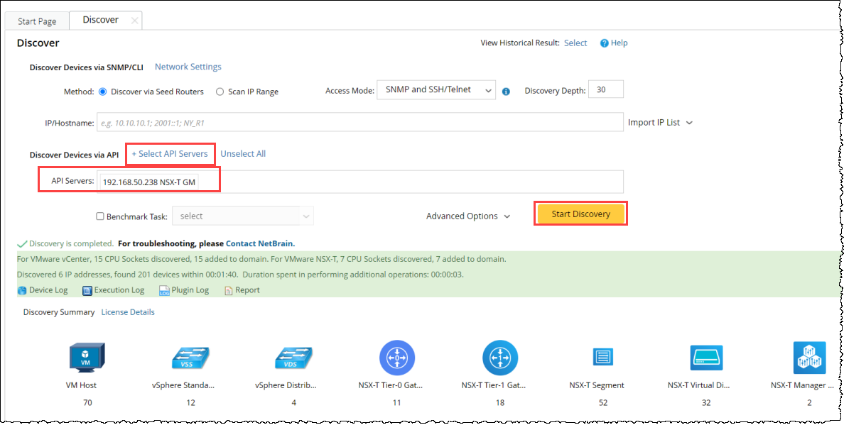 - Click Start Discovery.