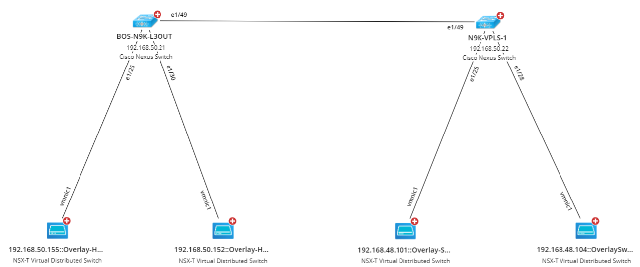 Example: A Visualized L3 Topology Map of NSX-T Underlay Network by N-VDS