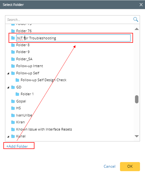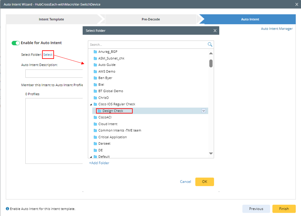 Note: The Folder structure in this dialog box is the same as that in the Auto Intent tab in IBA center. You can also add a new folder for storing this auto intent (add parent folder node from “+ Add Folder” link; add child folder node from drop-down menu of the parent folder).