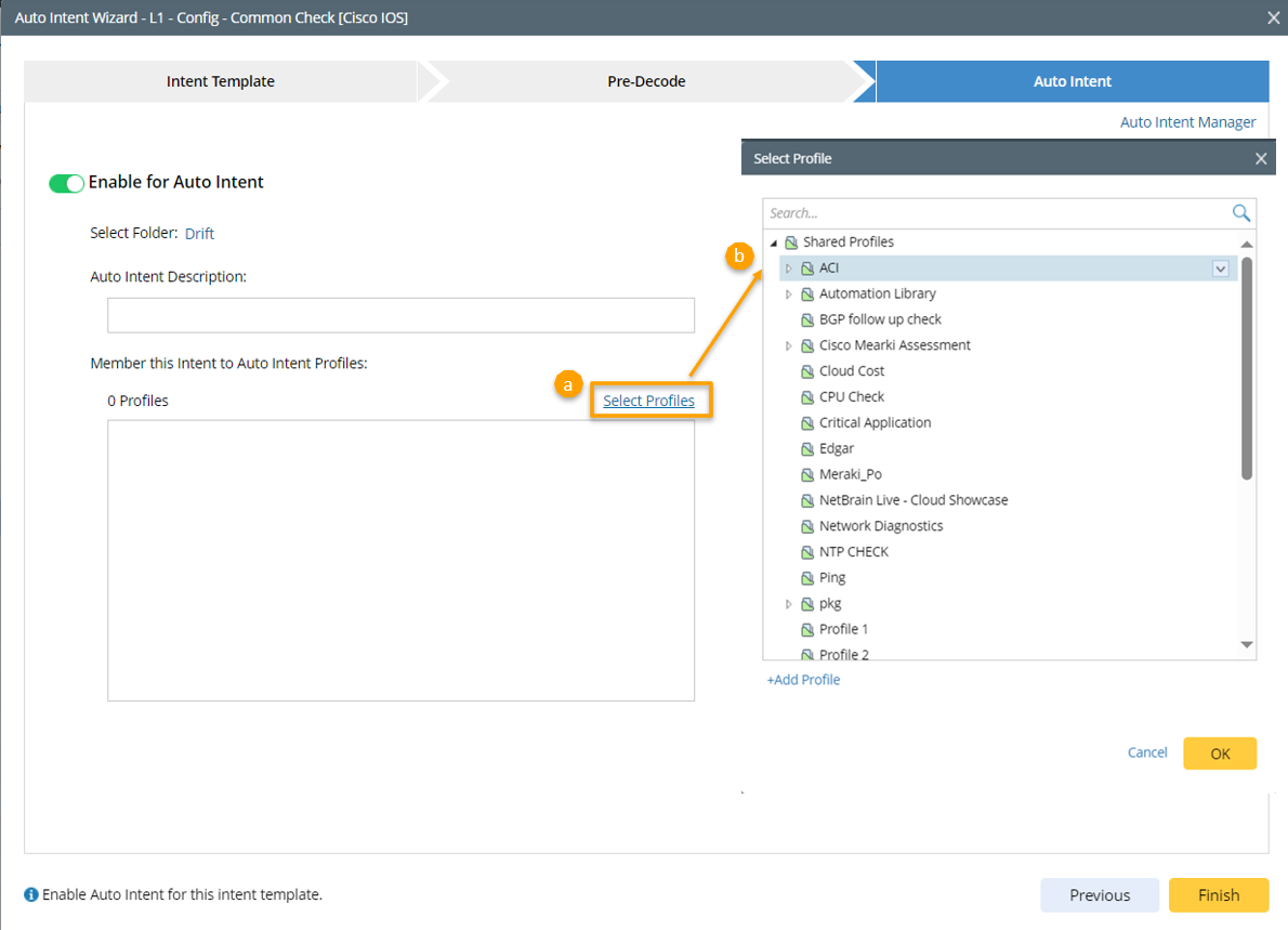 b. In the Select Profile dialog box, select a profile. You can repeat this step to add the auto intent to more profiles.