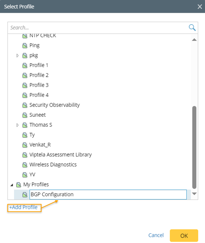 Note: Selected profile will be listed in the Select Profiles area. You can hover over a profile and click the icon to remove a profile.