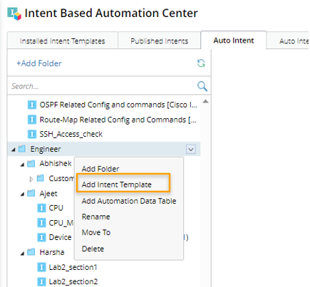 - Click Add Intent Template from the drop-down menu of a folder (for example, folder Design Check).