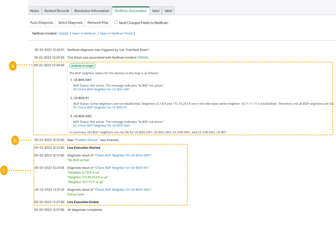 - View results in NetBrain Incident’s message pane.
