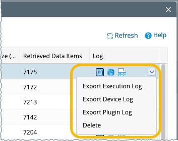 Note: In the drop-down menu, you can export the logs and delete the execution result. Multi-select is supported.