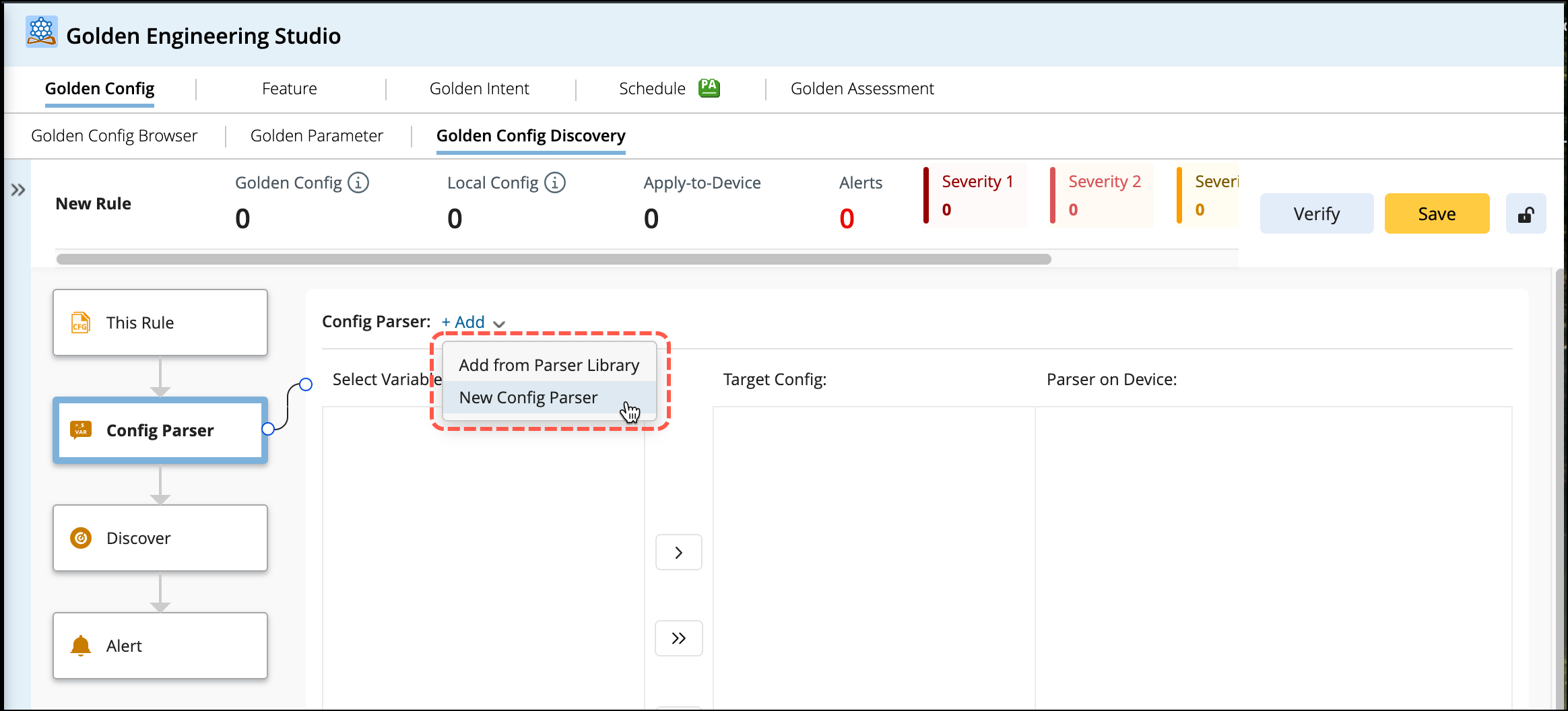 - Define Target config: To compare with the golden config template.