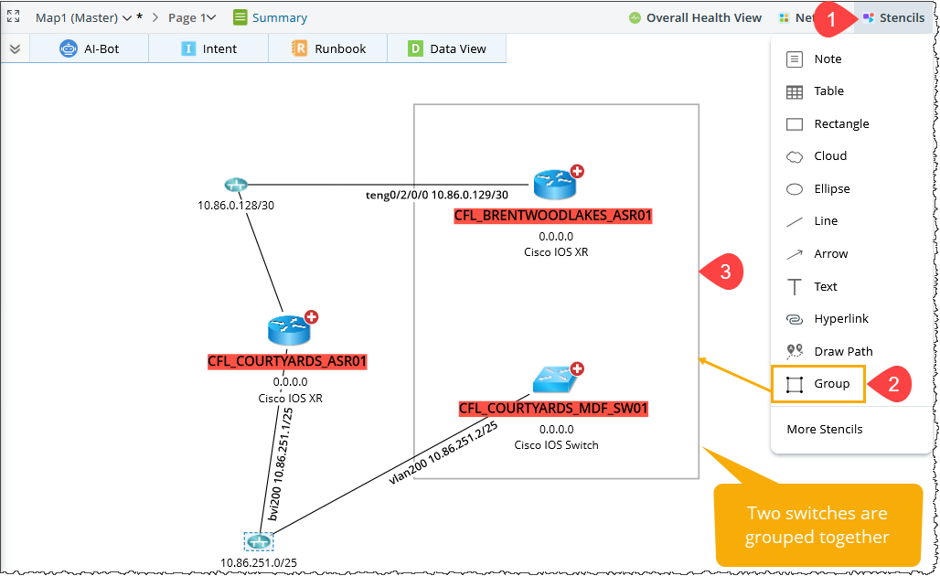 Group the Map Elements using the Stencils Menu