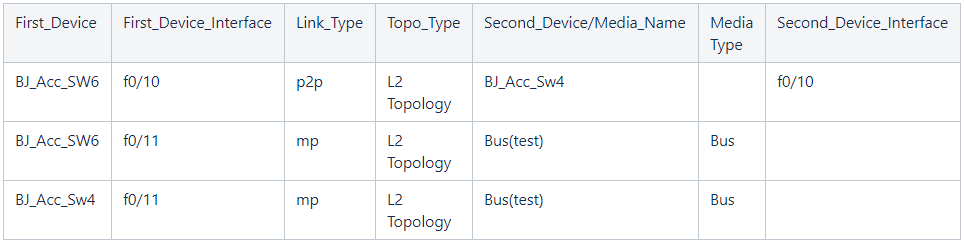 Topo_Type The topology type of the link between two device interfaces. There are the following topology types: