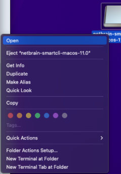 - Right-click the netbrain-smartcli-macos-12.1 icon and select Eject “netbrain-smartcli-macos-12.1”.