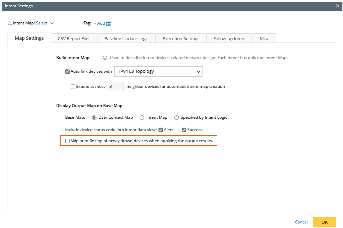 1) If the base map specified in the Map Settings is not consistent with the one set in diagnosis logic (specified as Context Map or Intent Map), the base map set in diagnosis logic will be used;