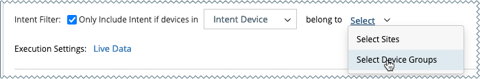 • When intent devices are selected: If any of the intent devices belongs to the selected device group or site, the related intents will be executed.
