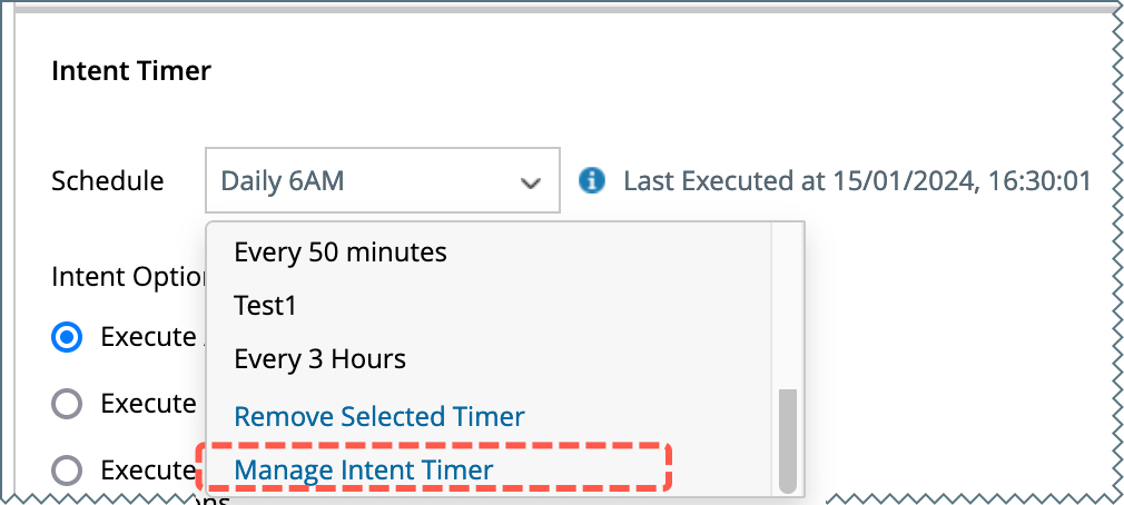 Note: Alternatively, you can add new intent timers according to your needs using the Manage Intent Timer option.