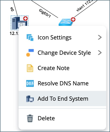 After the DNS name for an unknown end system is resolved, you can add the unknown system as an end system to your domain. You can use the end system for other functions, such as endpoints of the A/B path.