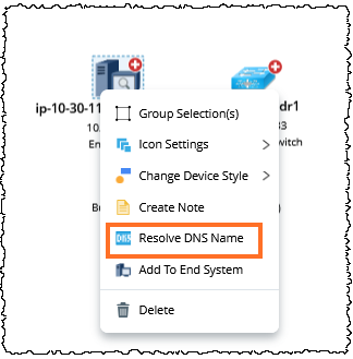Note: You can resolve the DNS name for an unknown end system from the map if the end system is mapped: Right-click the unknown end system on the map, and then select Resolve DNS Name from the menu.