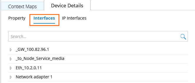 The interface details display a list of interfaces for each device, including both physical and logical interfaces.