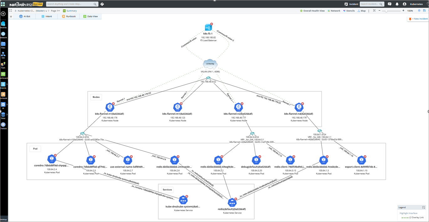 The NetBrain Automation Platform enables you to automate the diagnosis of your Kubernetes environment.