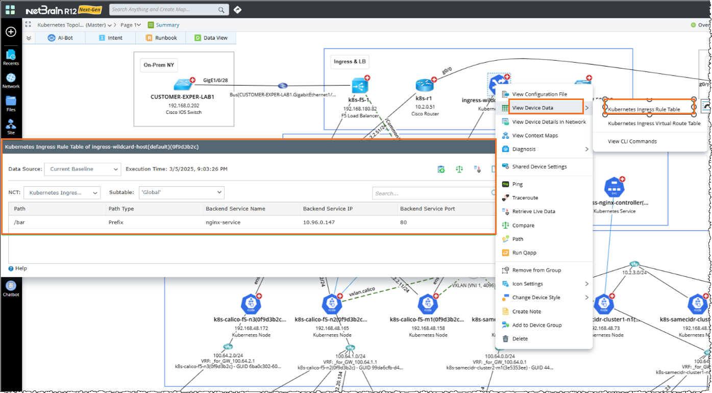 NetBrain supports the discovery of your On-premise, including the Kubernetes Cluster, Node, Pod, Ingress, and Service.