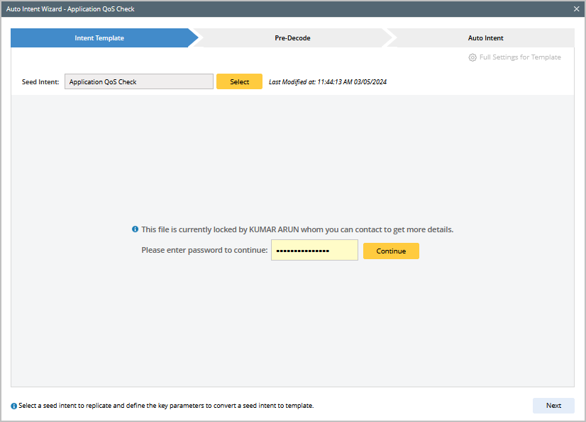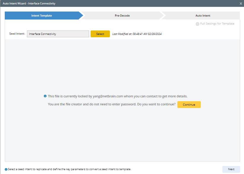 - For intent Creator: The intent creator has the privilege to edit the locked intent and can click Continue to proceed.