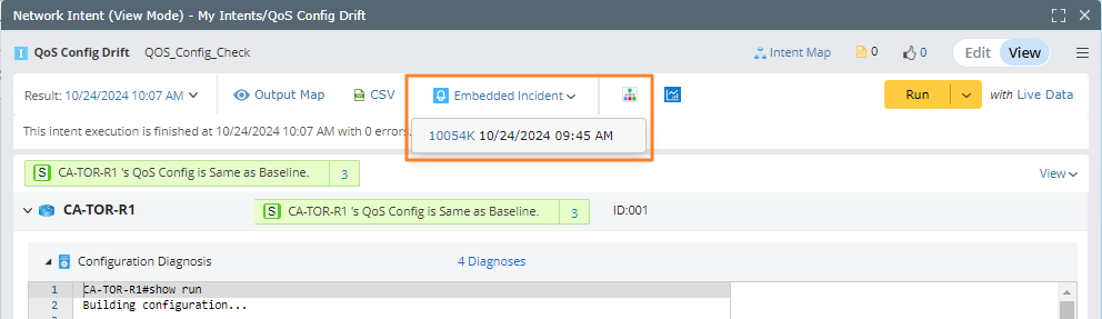 - For Single Intent: In the NI View mode, incidents generated by this intent can be displayed.