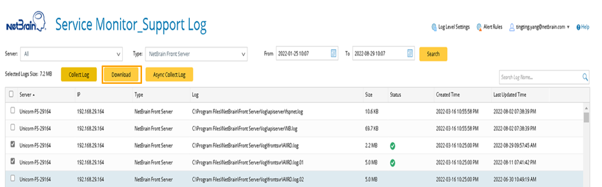 - Download the collected logs.