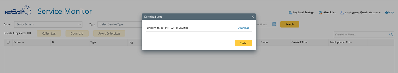 - Click Async Collect Log, then enter an email address in the pop-up window.