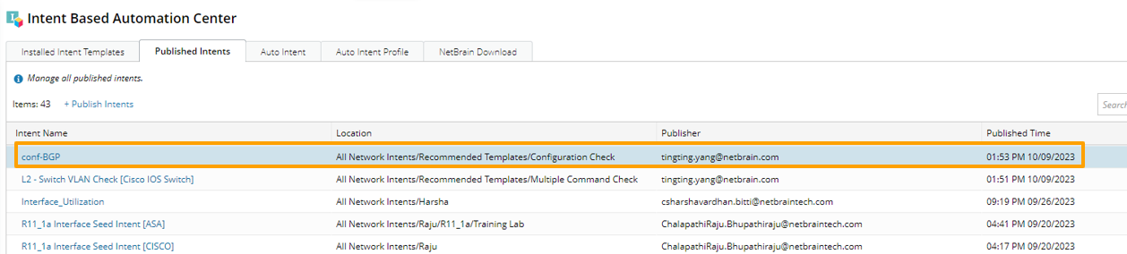 - Intent Name: A link to the published intent. You can click the intent name to view the intent details.