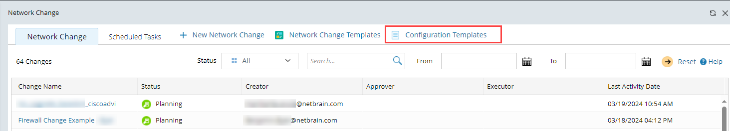 In the Network Change pane, click Configuration Templates.