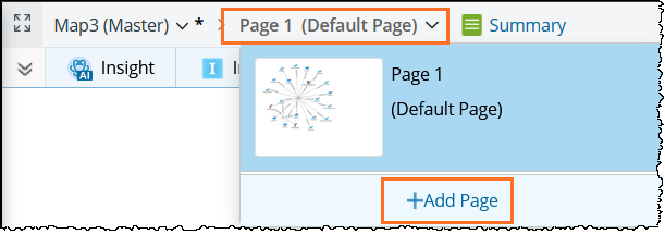 - Click the page title (for example, Page 1) in the upper-left corner of the map. The system displays thumbnails of all map pages.