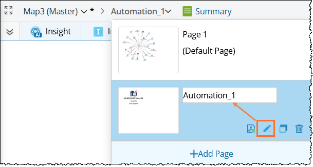 Enter the new name for the map page (for example, “Automatio_1”) and then click the map page to open it.