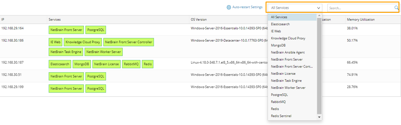 NetBrain Service Monitor provides a portal for administrators to observe the health of deployed Windows and Linux servers, with operations management of related services. It collects various types of metrics data from these deployed servers and visualizes them in tables or line charts.