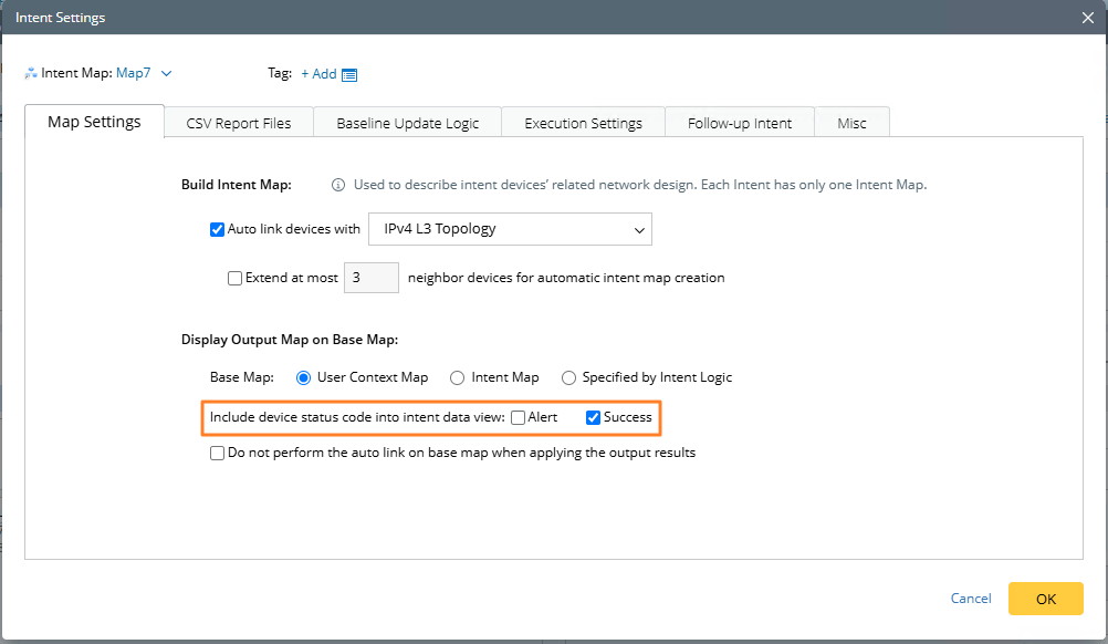 - On the Map Settings tab, only select the Success check box in the Display Output Map on Base Map area.