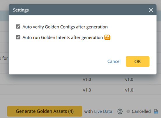 Assessment Library - > Generate Golden Assets → Settings Without PA license, the icon | |