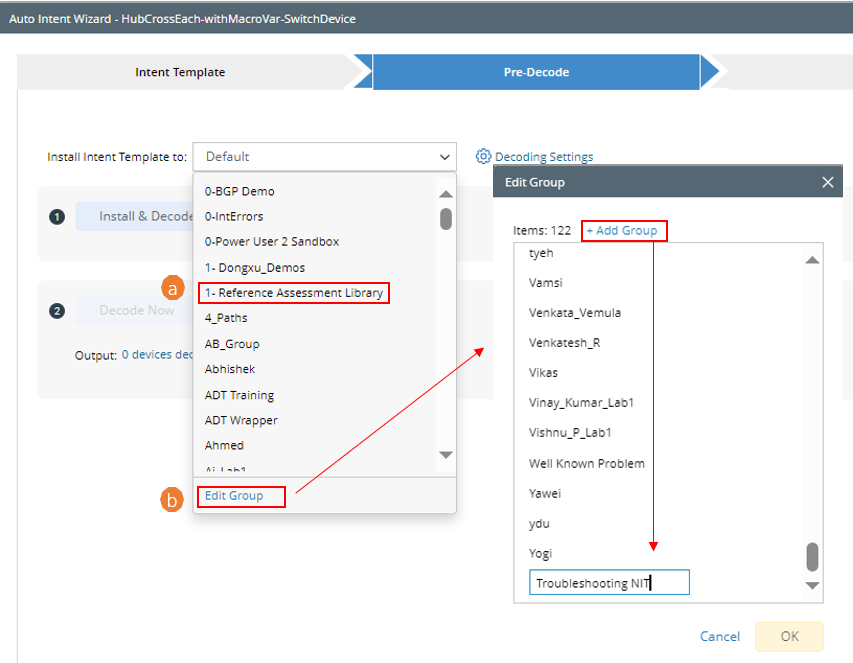 - Install Intent Template to: Select a group and install the intent in template mode.