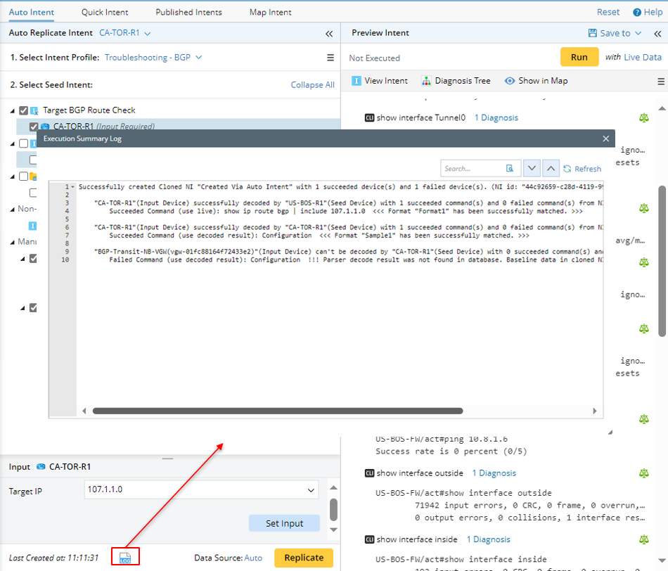 You can create an intent instance based on the selected intent by clicking the Replicate button at the bottom of the Auto Replicate Intent pane, then run the intent and view the results.