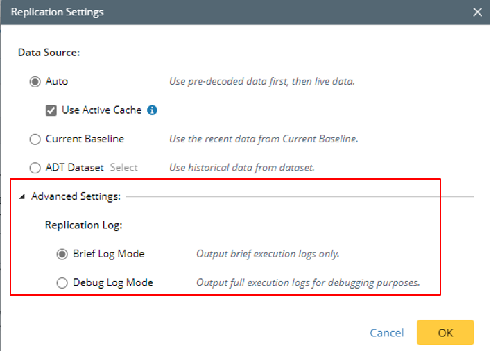 You can customize what type of log is generated. The system supports Brief Log Mode and Debug Log Mode, which can be selected in Replication Settings > Advanced Settings.