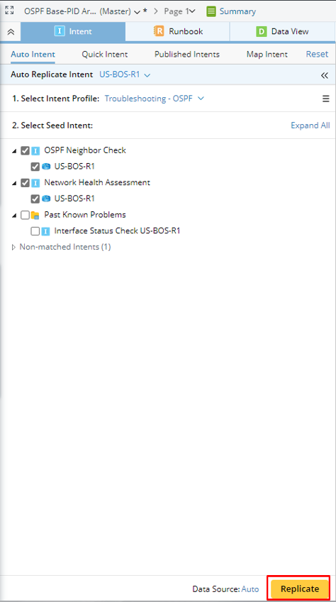 Replicate Intent: Click Replicate to create new intent via intent replication based on your intent selections.