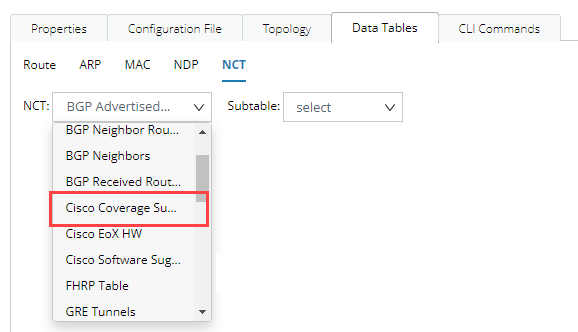 NetBrain includes the following information in the Cisco Coverage Summary NCT table.