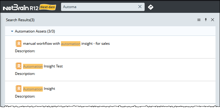 Note: The NetBrain System supports fuzzy search of automation assets. |