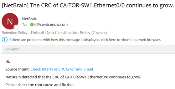 - Create alert notifications...: Set whether to send the email content as an alert notification to the NetBrain user.