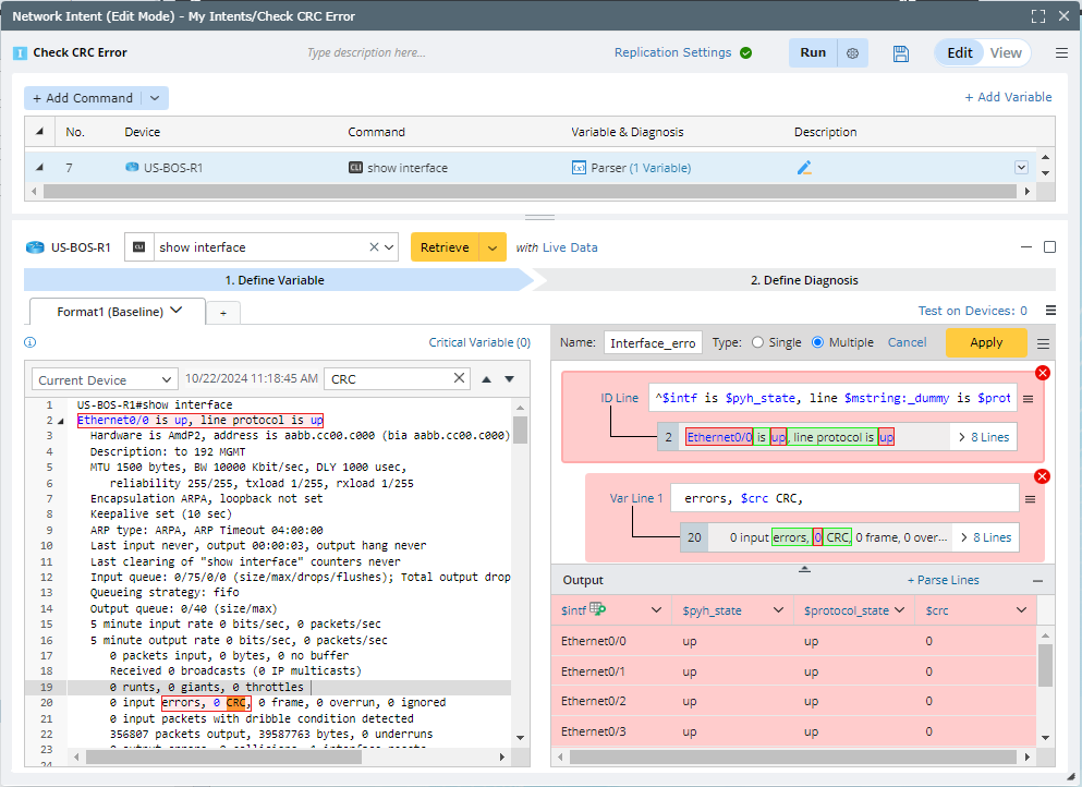 - Create an NI and parser the data (interface and CRC) to be diagnosed.