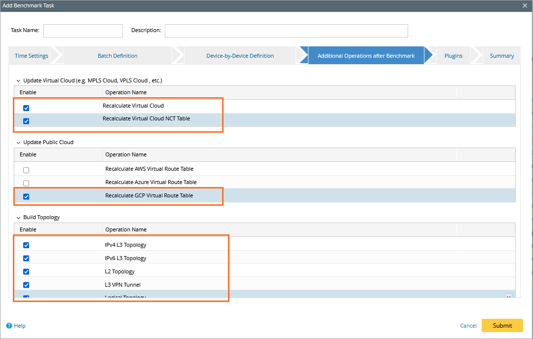 Note: As a best practice, we recommend re-using the Basic System Benchmark with a full benchmark task, where all devices are selected. This ensures that all GCP-connected physical or virtual devices are selected within the device scope.