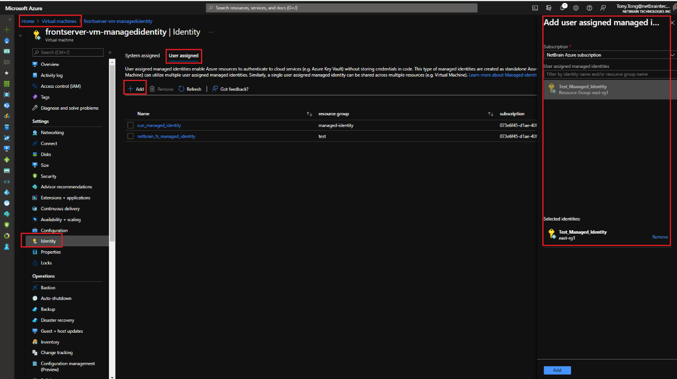 NetBrain supports both Azure-system-assigned and user-assigned Identity for VM, which acts as an application server to access APIs. You only need to choose either one of the following methods below.