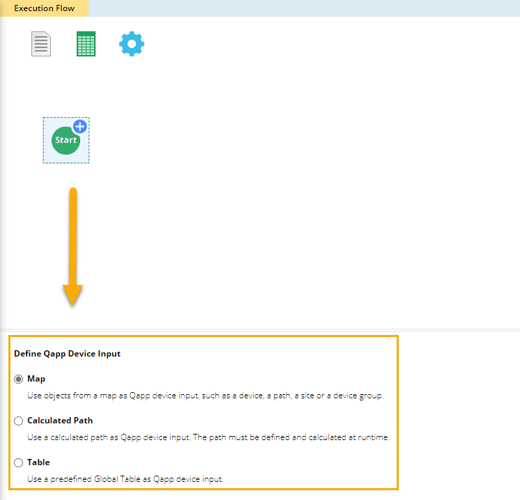 - Table — use a predefined global table as Qapp device input. As a result, the Device From option in the Device Queue node can only be a table.