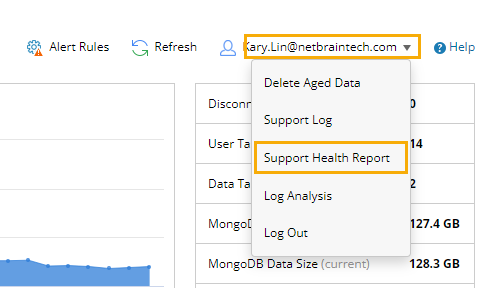 Support Health Report aims to check the health status of NetBrain systems online/offline so that system improvements can be made promptly according to the report.